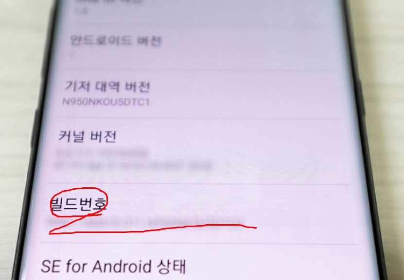 세 번째, 이후 소프트웨어 정보를 선택하시게 되면 중간에 빌드번호란을 보실 수 있습니다. 그때 빌드번호를 연속으로 누르시면 개발자 옵션이 활성화되는 것을 보실 수 있으실 겁니다. 여기까지 진행하시면 갤럭시 공장 초기화를 할 수 있는 설정이 끝났다고 보실 수 있습니다.