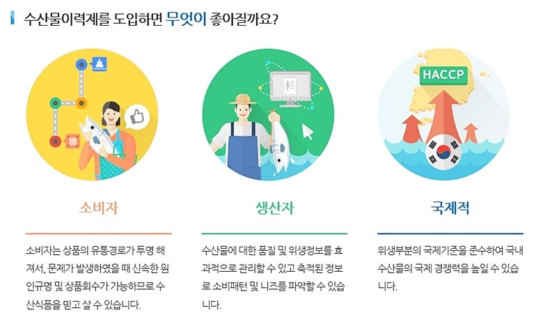 이처럼 수산식품으로 인한 피해를 줄일 수 있는 것이 큰 장점인데요. 많은 분이 우려하고 있는 일본의 원전사고와 같은 불가피한 사고가 발생했을 경우, 수산식품에 대한 신속한 회수로 발 빠른 대처를 가능하게 하고, 피해 범위를 최소화할 수 있습니다. 안전한 수산식품의 유통과 소비를 위해서는 정말 필요한 제도이지 않을까요?