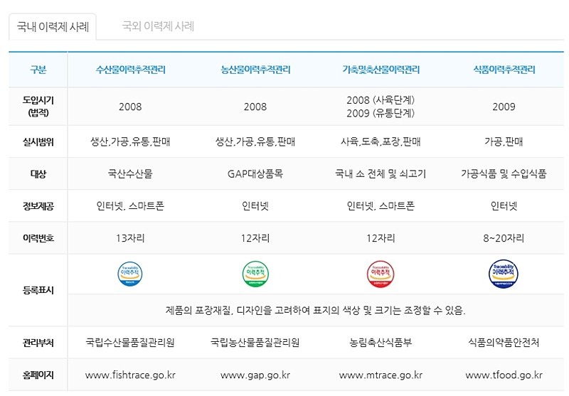 또한, 해외에서도 다양한 이력제를 시행하고 있는데요, 일본의 ‘굴이력추적제’, EU의 TRACE 프로젝트, 대만의 대만농산품안전이력추적제, 그리고 중국의 수산물 품질안전이력제가 이러한 예라고 할 수 있습니다.