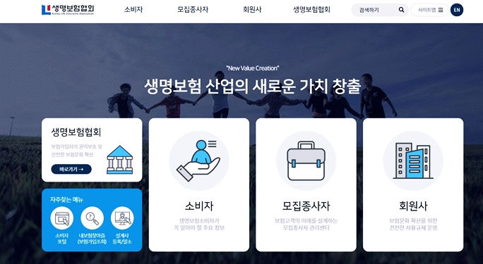 생명보험협회 홈페이지에 접속해 보시면 메인 화면에서 자주 찾는 메뉴 카테고리에 내 보험 찾아줌 메뉴가 있습니다.