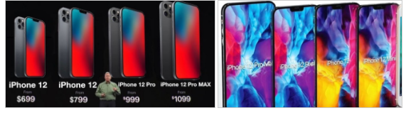 아이폰 12 시작 가격은 애플 답지 않게 649달러 부터 시작하는데 아이폰 11 보다 가격인하가 되었습니다. 라인업 별로 가격을 빨리 알려드리면 아이폰12 5.4인치 649달러, 아이폰12 max 6.1인치 749달러, 아이폰pro 6.1인치 999달러, 아이폰12 pro max 6.7인치 1099달러