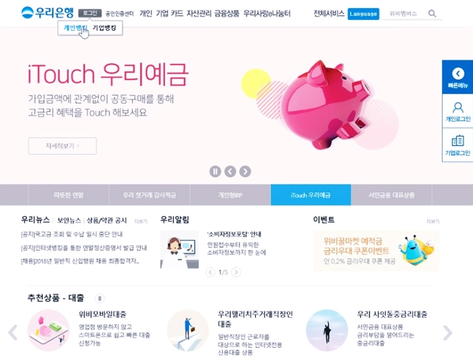 우선, 우리은행 통장사본을 출력하기 위해서는 우리은행 홈페이지에 접속해 주셔야 하는데요.