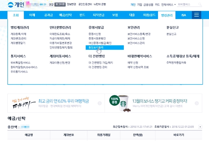 우리은행 통장사본 발급 인터넷 쉽게하기
