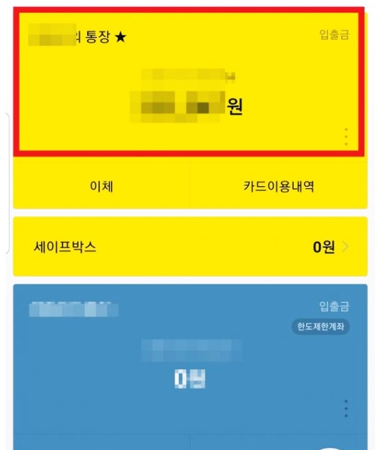 카카오뱅크 모바일 애플리케이션을 실행해 주시고 통장 사본을 발급할 계좌를 선택해 주시면 됩니다.