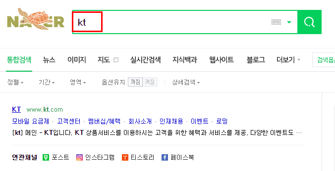 공식 홈페이지로 들어가는 방법은 네이버 또는 다음 사이트에서 KT를 입력해주세요.