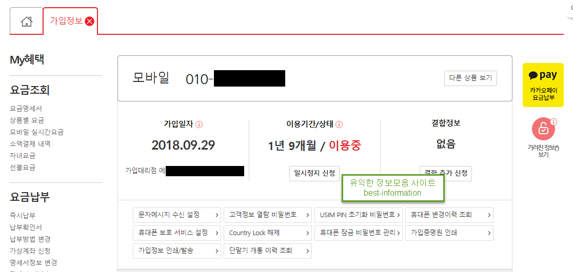 4. 이동통신 가입정보 확인하기